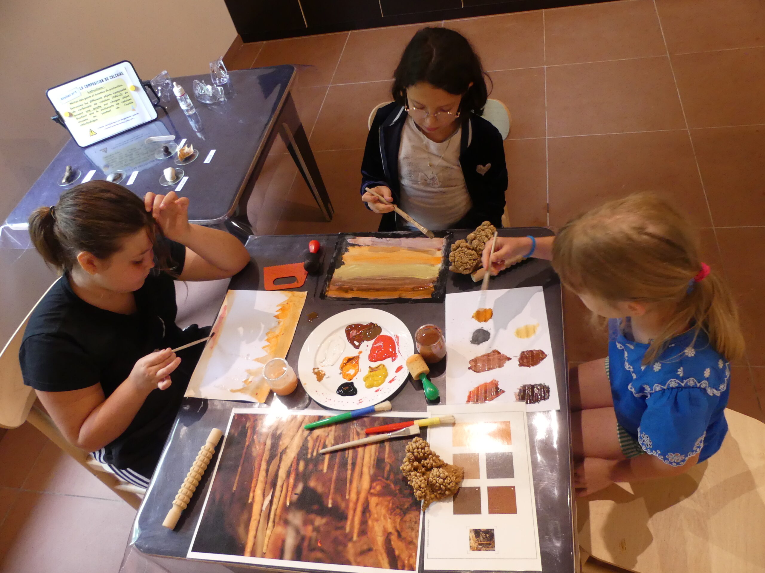 La salle d’ateliers pédagogiques est un espace où l’on expérimente. Nous proposons trois types d’ateliers : les ateliers géologie, les ateliers artistiques et l’atelier biodiversité.